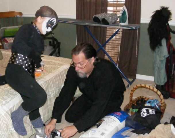 mi dos hijas y mi hijo y yo terminado la banda de rock KISS Halloween 2013.  Somos grandes fans de rock ' n ' roll y tengo ganas de hacer estos trajes por años. Para empezar, he visitado tiendas de segunda mano para tratar de encontrar que la derecha