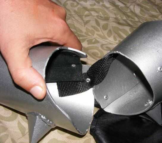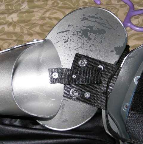 Las piezas de la parte superior del brazo fueron suspendidas desde el canesú del hombro por piezas cortas de cinta de nylon negra web, y los brazos más bajos fueron atados a los brazos del mismo modo. Las placas de abdomen del mismo modo fueron suspendidas desde la parte delantera de la horquilla, debajo de las pectorales por lo que no muestran los remaches. Cubre el yugo y pectorales se clavan directamente en el canesú del hombro.