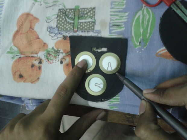 2.Place elementos piezoeléctricos en la hoja del pvc y marque para hacer agujeros