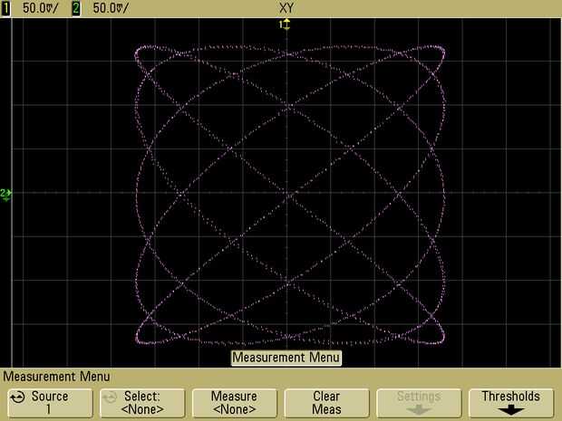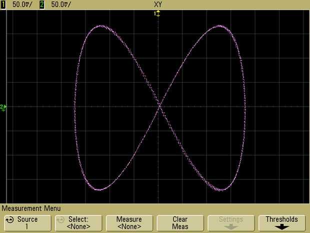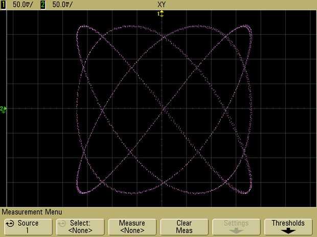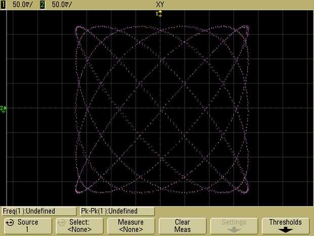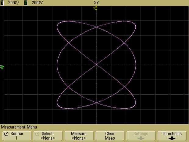 Ahora, configurar el osciloscopio en modo XY y presione el botón de Play en audacia!