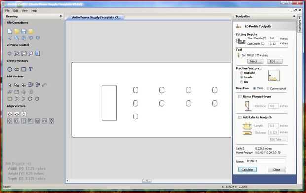 Soy un miembro en un taller de bricolaje llamado TechShop. Tienen el AutoCAD y el software Vectric que estoy usando disponible para todos los miembros a utilizar. También cuentan con máquinas CNC como el ShopBot, que voy a utilizar para cortar realmente los agujeros de esta placa (en otro Instructable todavía por hacer)...