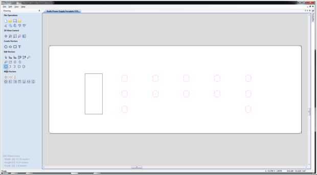 Para crear un trazado de corte, corte 2D requiere que todas las líneas en el dibujo sean confiablemente conectado/se unió a juntos. Llego a saber que las líneas de 4 en el rectángulo se unen en las esquinas ya así que va a hacer nada. Pero las líneas en el óvalo 12 como orificios no están (un capricho de cómo dibujaba en AutoCAD - tuyo pueden todos ser conectado correctamente). Así que, usando su ratón, dibujar una ventana en todos lo agujeros de forma ovalada y selecciónelos todos. Luego pulsa el botón de unirse a vector - ir al panel de la izquierda y localizar el primer botón por encima de las palabras "Alinear vectores". Será un óvalo con 5 puntos amarillos. Haz clic en este botón.