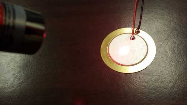 Mi primera hipótesis fue que el láser solo estaba calentando el disco piezoeléctrico, haciendo que la base para deformar un poco y producir un voltaje debido a la presión diferencial; sin embargo, no fue el caso. El láser utiliza salidas de menos de 5 mW, que es muy, muy débil en cuanto a calentar cosas a distancia. En segundo lugar, el disco piezoeléctrico también produce una tensión con un LED y luz infrarroja ! Woah!