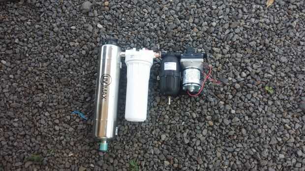 Conectar el tanque de presión de la bomba con el filtro UV usando las guarniciones de cobre reductor hecho en el último paso.