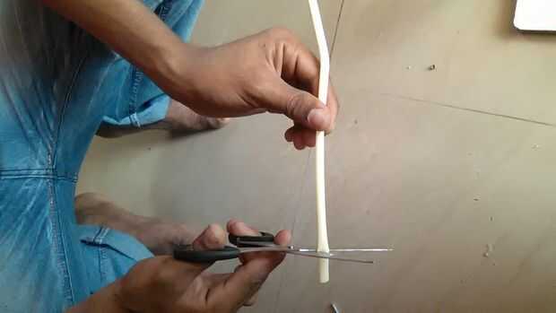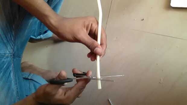 Corte las pajillas con la ayuda de la tijera.