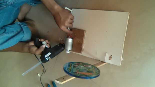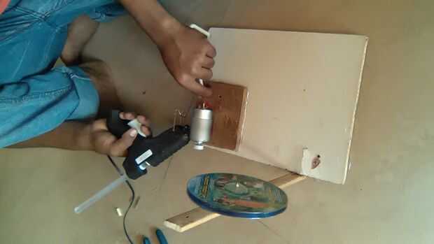 Tenemos que fijar el motor con la ayuda de gluegun y pieza de metal.