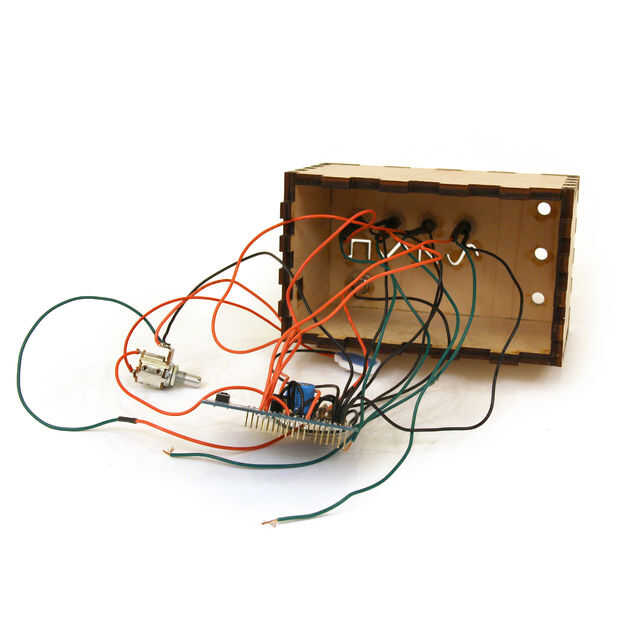 Este es un generador de ruido. Se conecta un aun amplificador de guitarra o cualquier consola, y al mover las dos perillas géneros diferentes ruidos con textura de corriente eléctrica. Utiliza libremente la idea de onda diente de sierra, pero el obje