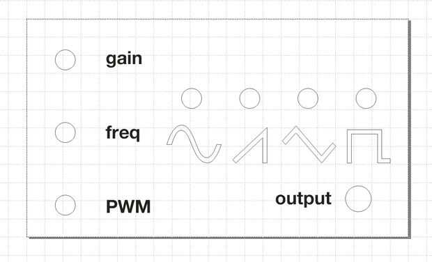 Cortar formas de todos cuatro formas de onda en el frente de la caja para que los podía contraluz con indicador LED, usted puede sólo perfore cuatro orificios de 5 mm para los LEDs en el panel frontal del recinto, lugar un LED en cada interruptor momentáneo.