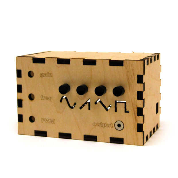 Este es un generador de ruido. Se conecta un aun amplificador de guitarra o cualquier consola, y al mover las dos perillas géneros diferentes ruidos con textura de corriente eléctrica. Utiliza libremente la idea de onda diente de sierra, pero el obje