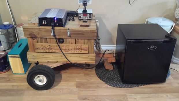 He alimentado calentadores, refrigeradores, televisores, ventiladores, lavadoras, luces. Lo que sea y esto muy probablemente potencia incluyendo unidades de CA pequeños. El pequeño mini nevera aquí ha estado funcionando durante 25 horas ahora con un montón de batería energía restante para ejecutar más cosas. Puede tenerlo en su cabaña remota y ser completamente la rejilla. Vea mis otros instuctables de los paneles solares de ligero plegables que complementan este generador muy bien!