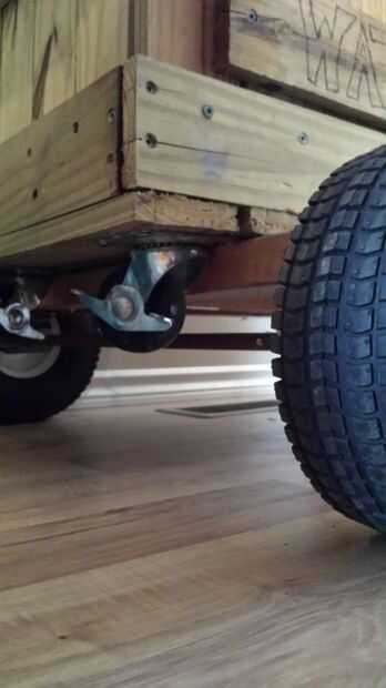 6. Voltee la caja y atornille las ruedas de ricino en la parte inferior de la caja.