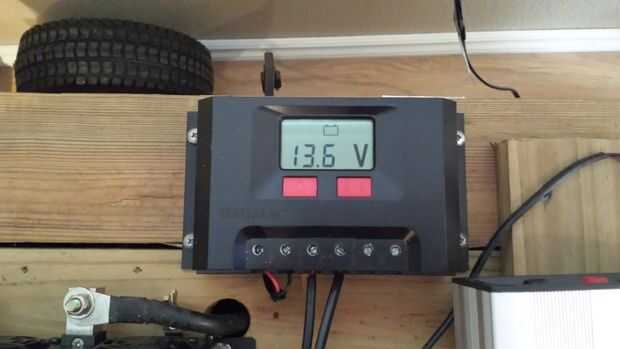 1. elegir la ubicación exacta de su controlador de carga y otra vez Tornillo abajo y perfore agujeros detrás de él para bajar los cables por la parte superior. Cuando las baterías están en el cuadro, puede conectar los cables de la batería desde el controlador de carga a las baterías.