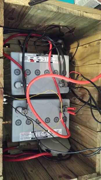 Usé dos baterías MK 74 AH para sillas de ruedas. Encontró un heck de un acuerdo en la lista Craigs. Sólo asegúrese de que utilizar baterías de ciclo profundo de 12 voltios. Hay espacio para uno más de allí creo pero por ahora esto va a hacer. Conectarlos en paralelo. Conectar todos tus gadgets a las baterías mediante pinzas cocodrilo o cómo siempre lo haces.
