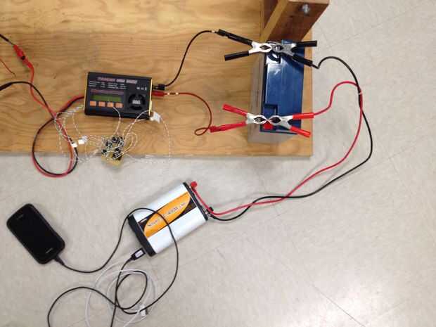 Dependiendo de los dispositivos que desea cargar (aquí estábamos interesados en la carga de ordenadores portátiles, teléfonos celulares y otros dispositivos de pequeño estudiante) necesita para asegurarse de que el inversor puede hacer salir la cantidad de vatios. Como recordatorio, vatios son una medida de energía necesaria por unidad de tiempo, julios por segundo. Aparatos normalmente lista la potencia que necesitan pero para darte una idea general, una célula requiere 5 vatios y una computadora portátil requiere aproximadamente 45-60 vatios. El inversor destacado en este instructable tiene una capacidad de 400 watts.
