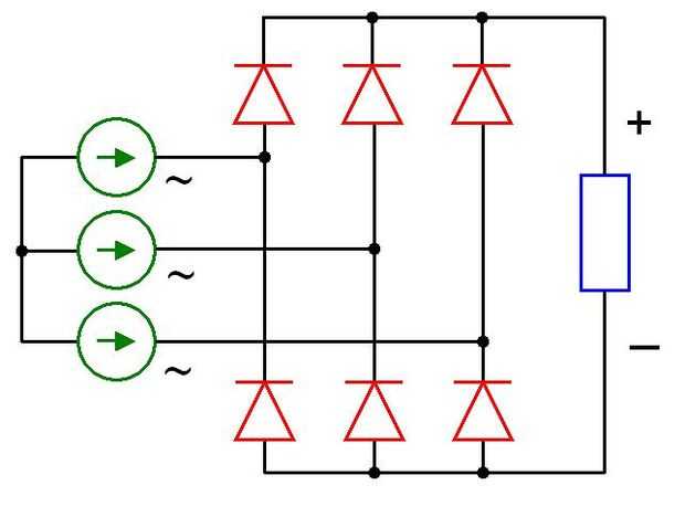 Si usted puede encontrar un rectificador de 3 fase, vaya con eso, pero usted puede también uso monofásico 3 rectificadores con su DC salidas enganchados juntos en paralelo. Mina estaba fuera del alternador muerto de mi Austin Mini.