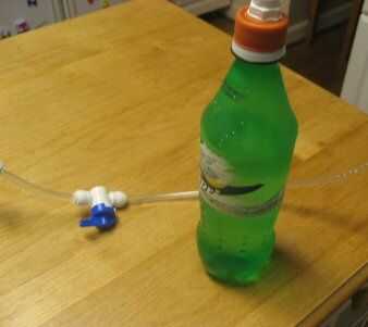 Nota: Sacude la botella de 1,5 L ayudar a aumentar la presión pero tenga cuidado de no para conseguir alguno de levadura agua en la tubería. Va estropear el sabor del agua.