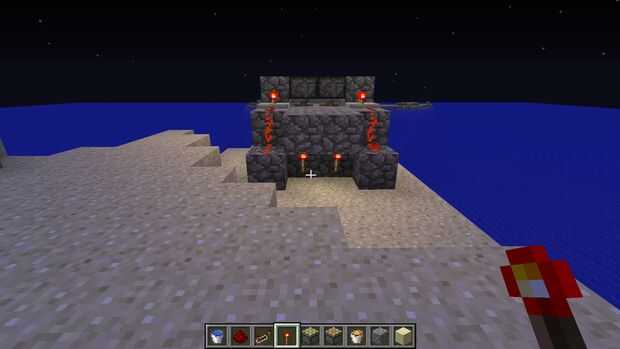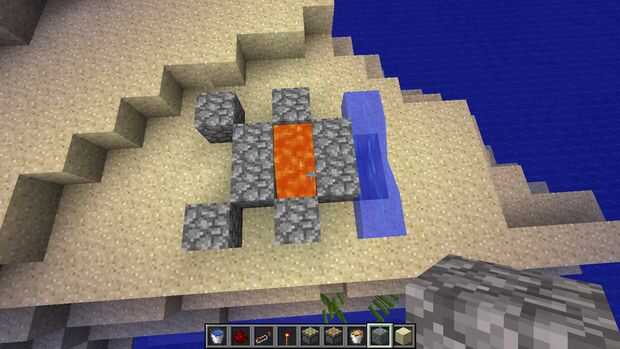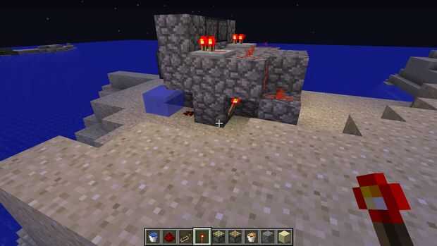 para hacerlo necesita lava, agua, polvo de redstone 6, 8 antorchas de redstone, 2 repetidores de redstone, pistones guijarro 2 22 y 2 pistones pegajosos.