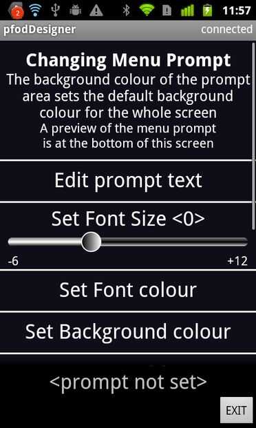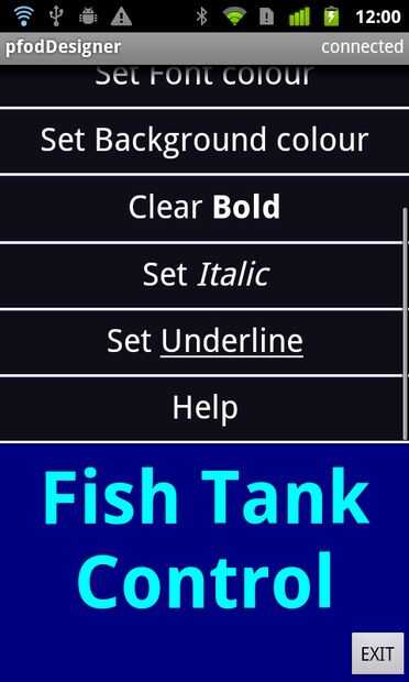 Haga clic en editar texto pronto y establecer el texto "Peces tanque control" con un salto de línea entre el 'Tanque' y 'Control'. Haga clic en la casilla para aceptar estos cambios y volver a la pantalla del Mensaje de cambio de menú con el texto pronto actualizado.