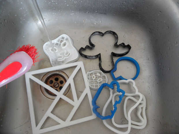 Para limpieza agua caliente (pero no demasiado caliente, consigue PLA suave a 60 ° C), cepillo jabón y plato debe hacer el trabajo. Evite el lavavajillas.