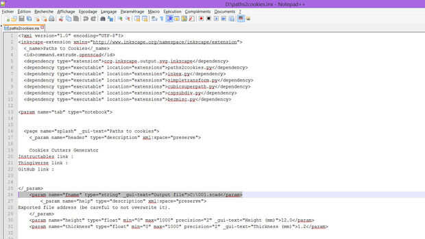 Nota: Puede que necesite la administración en su editor de texto para editar el archivo .inx.