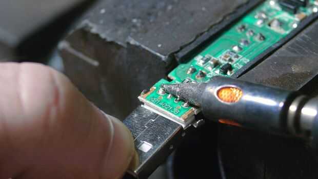 Para cambiar cómo se alimenta este tablero el primer paso es quitar el terminal USB. Dos pestañas en el lado son masas que luego sólo deja las cuatro clavijas de conexión evitando que entren gratis. Tocando un soldador a través de los cuatro al mismo tiempo permite a la gota.