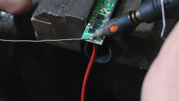 En la última imagen se puede ver que estoy trabajando en el lado opuesto de la Junta, donde has desoldar el cable de salida blanco corto y estoy volver a colocar una nueva, mucho más uno.