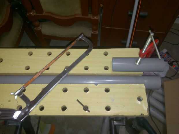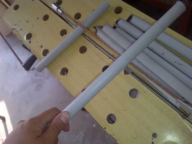 3) corte el tubo de 2" a 4 segmentos, cada ser 18".