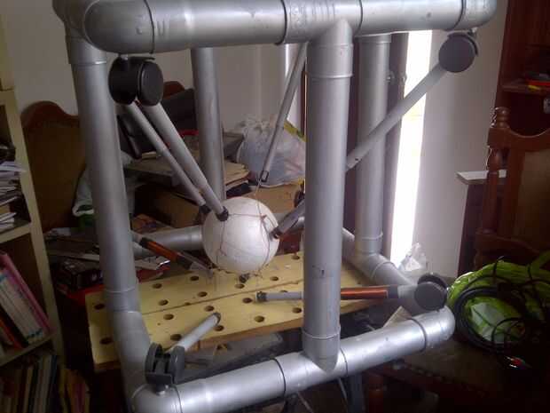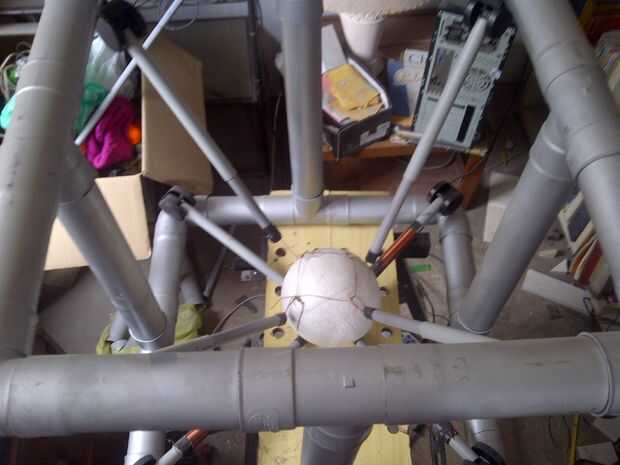 Para la boya usé una 8" diámetro ampliado poliestireno bola que fue"asegurado usando alambre para mantenerlo firmemente unido a la 5/8"tubos.