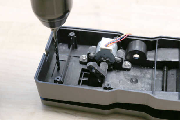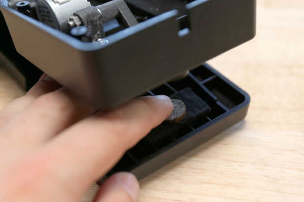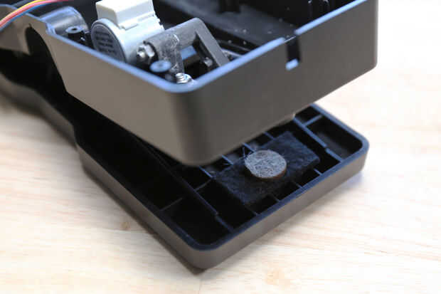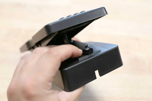 Perfore un agujero de 3/16" en el centro de la almohadilla de contacto plástico en el cuerpo del pedal de expresión. Monte el disco de acrílico en la parte superior de este cojín con una tuerca de 8mm y un tornillo.