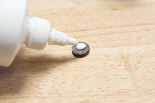 El disco de fieltro a la almohadilla de fieltro que está directamente enfrente de la almohadilla de contacto plástico del pegamento.