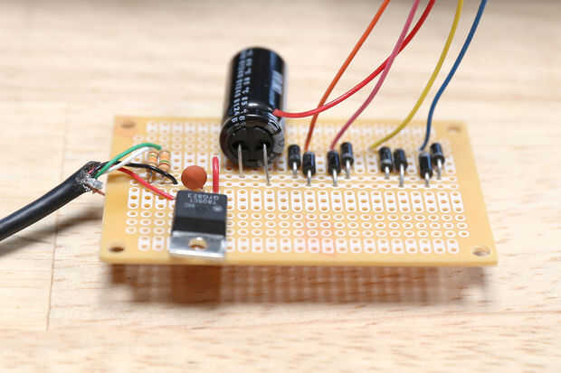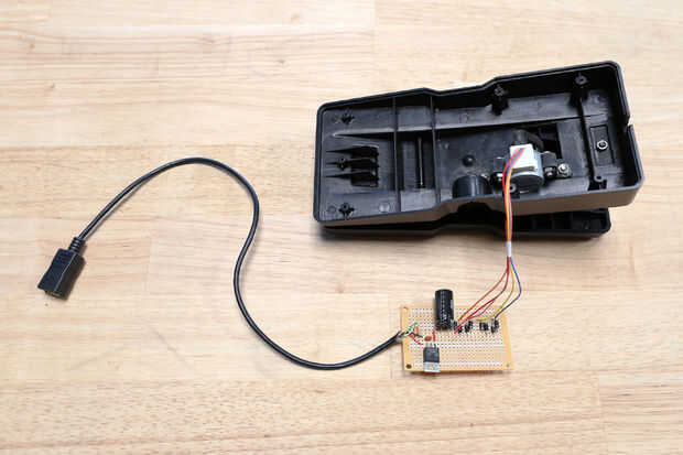 Suelde los cables del motor a la placa tal como se especifica en el esquema.
