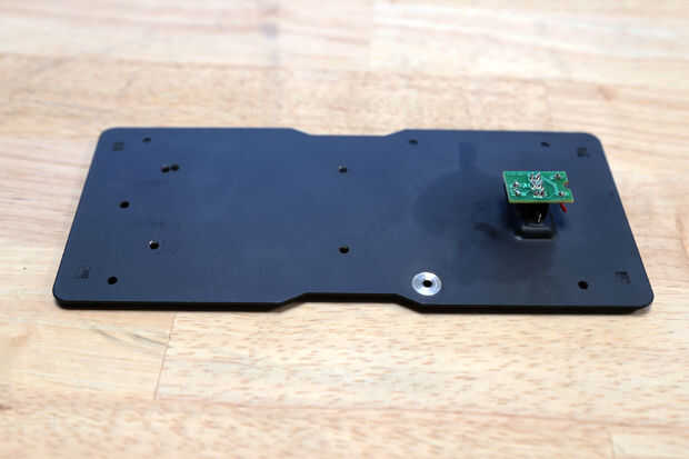 Coloque la placa de circuito centrada encima de la placa base del pedal en el lado opuesto del tablero de circuito pequeño existente.