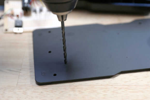 Hacer las marcas para cada orificio de la esquina y luego Taladro broca de ellos usando una 1/8".