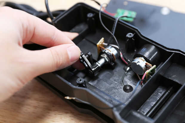 Tire del brazo de palanca existente en el eje del potenciómetro en el interior del pedal.