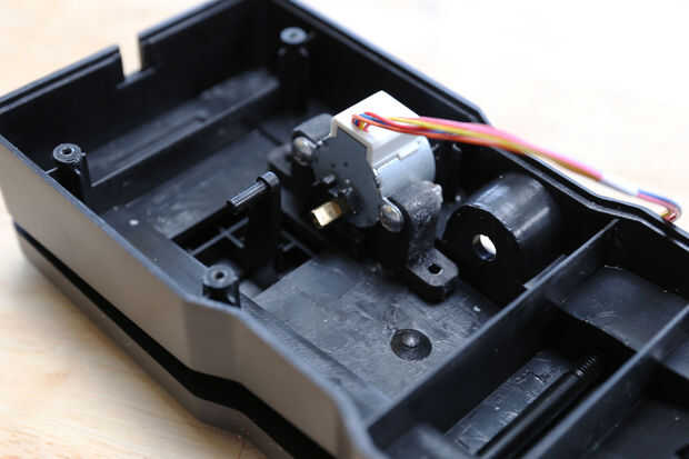 Coloque el eje del motor en el interior del pedal donde anteriormente estaba situado el potenciómetro con el brazo de palanca.