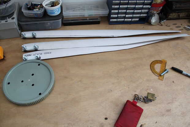 2) entonces la cuenta 120 grados desde un punto al azar y hacer una marca, de la nueva marca, repita el mismo proceso. (esto es para 3 láminas si os ponemos más utilizan este = > 360 / nub. de bla. = Cuántos grados se encuentra una marca de otra)