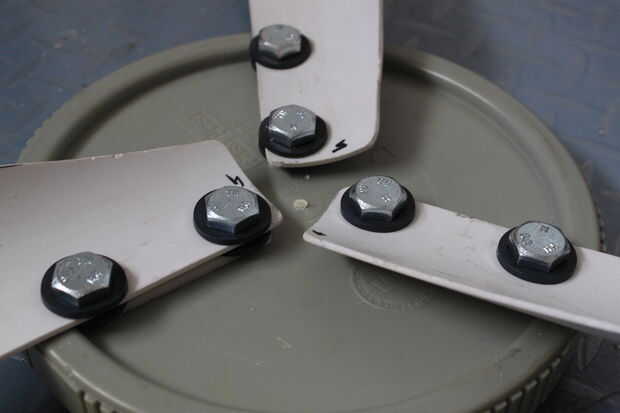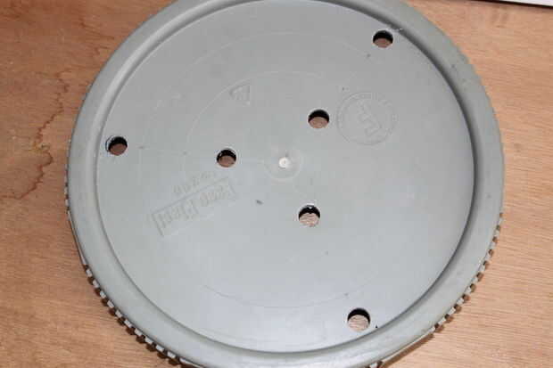 Puesto que el rotor que utilicé era de plástico de baja calidad me intercala entre 2 pedazos de madera y aseguradas con 9 tornillos.