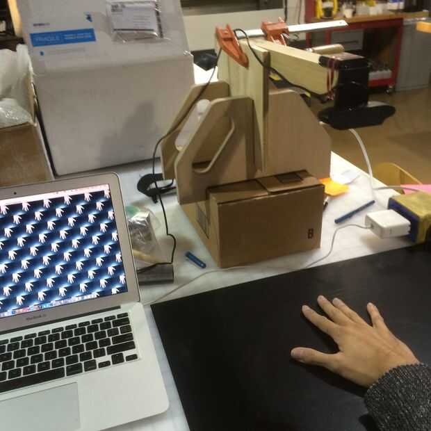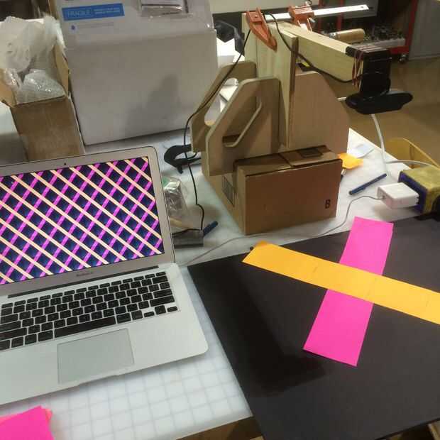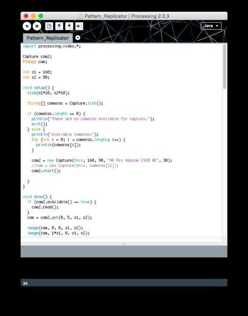En cuanto al código, he usado proceso ejecutándose en un ordenador portátil Mac. La idea es simplemente tomar en la entrada de vídeo de webcam y mostrar versiones más pequeñas de ellas en baldosas forma (utilizando la función de "traducir"), fila por fila. Estoy lejos de ser un experto en programación, y esencialmente manualmente codificado cada fila, en lugar de escribir un objeto que reutilizan una y otra vez. Pero el código funciona bastante bien para mi uso, vea el archivo .pde adjunto. Cuando lo ejecuto, en realidad utilizar función de zoom de pantalla de Mac para hacer el bosquejo aparece pantalla completa sobre la proyección.