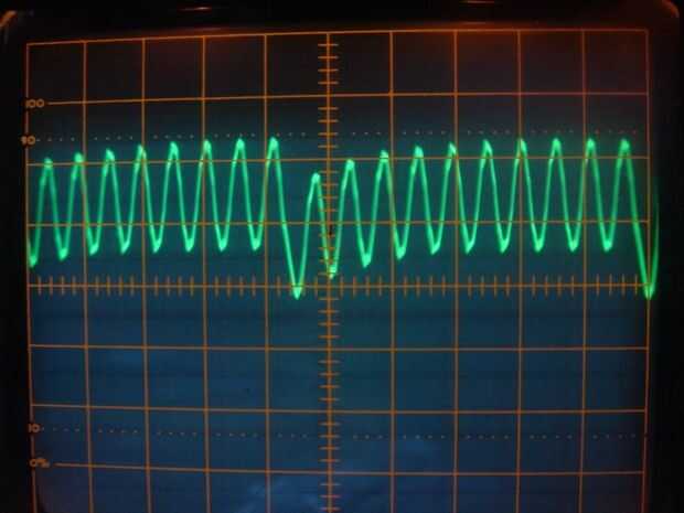 El irregular poco "inmersión" en la forma de onda es causado por la declaración de rjmp que lleva 2 ciclos de reloj para procesar. Para conseguir alrededor de esto, copiar/pegar la secuencia en la función de lazo muchas veces espalda con espalda, produciendo muchos períodos de la forma de onda para cada bucle. Esta foto es de una secuencia de 10 períodos por loop, el atmega16-16pu tiene memoria suficiente para diez veces que fácilmente.
