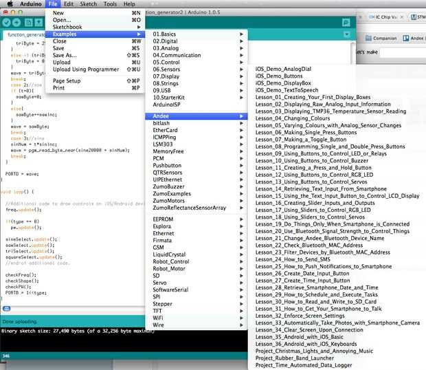 Iniciar o reiniciar el IDE de Arduino y veremos ejemplos de Andee instalados.