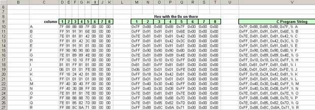 Gracias por comprobar esto hacia fuera. Por favor en contacto conmigo si hay cualquier preguntas o errores. Que será útil para usted, ya que no hay muchos datos de 5 x 8 por ahí y la mayoría de los applets en línea de matriz de puntos son lame para hacer grandes cantidades de cosas.