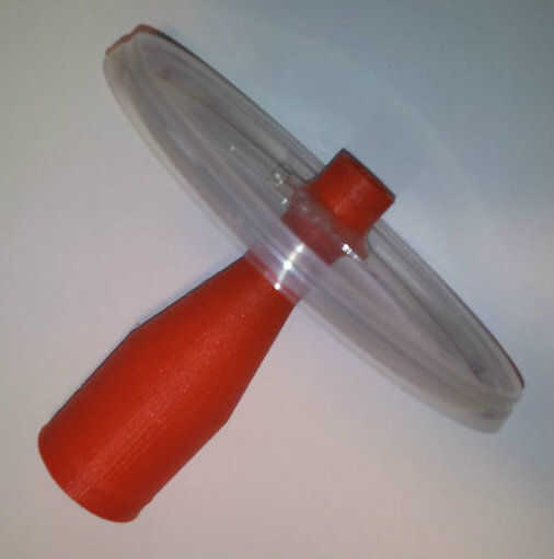 Después de que ha perforado el agujero, inserte el extremo del embudo y fíjelo con pegamento caliente. (Tenga cuidado, que el pegamento no es demasiado caliente! Si hace demasiado calor derretirá a través del embudo y el envase.)
