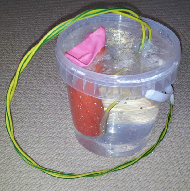 El último paso es poner un globo en la parte superior del embudo para recoger el gas hidrógeno.