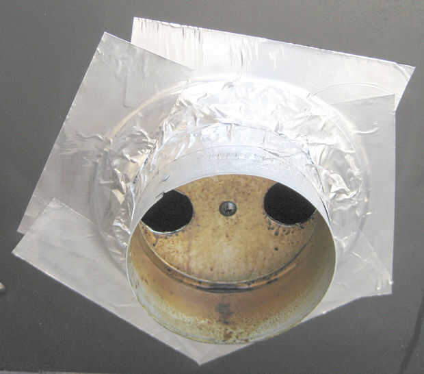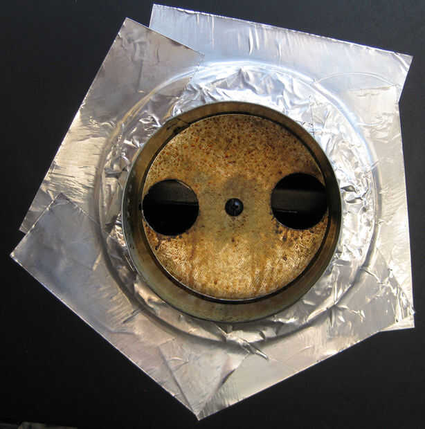 Un trozo de rejilla de acero inoxidable, del suministro industrial o ferretería local.