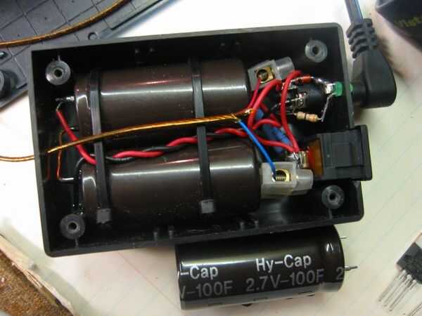 -Sin baterías! Almacenamiento de energía es dos supercondensadores 100F, 2,7 voltios en serie, dando 50F en 5.4volts.