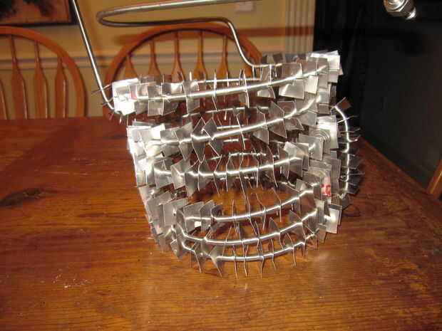 He añadido 0,016" aletas de aluminio de espesor que dT/dt aún más permitiendo mejor transferencia de calor. Con cuidado perforé un agujero más pequeño que el tubo de 1/64". Luego cortar la Plaza y rompieron la aleta en lugar. Entonces puedo sumergir la nevera en un baño de hielo o exponga a las temperaturas al aire libre cuando esté disponible.