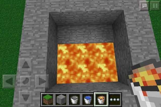 Debe estar junto al titular de agua, con sólo una fila de bloques de separación de los dos. También debe ser un bloque más bajo que el titular de agua, por lo que el agua llega a la lava primero. Hice un paso entre los titulares de la lava y el agua en el lado de lava por lo que el agua tiene un lugar para ejecutar que el titular de la lava tiene que ser profundo dos cuadras por lo que la lava tiene una pared superior alrededor de él. (IMPORTANT-debe colocar la lava un cuadrado-por ejemplo, si yo quería hacer obsidiana 6, haría que el titular de lava amplia a dos cuadras y tres cuadras de largo - seis bloques de espacio, y le pongo un cubo de lava en cada bloquean de espacio, para hacer seis cuadras.)