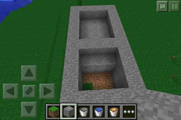 esta creación se utiliza para hacer piedra sin minería para conseguirlo gratisPaso 1: Excavación de la estructura Primero cavar un agujero a 1 cuadra profundo y luego el segundo bloque de la izquierda hace otro bloque profundo como en la imagenPaso 2