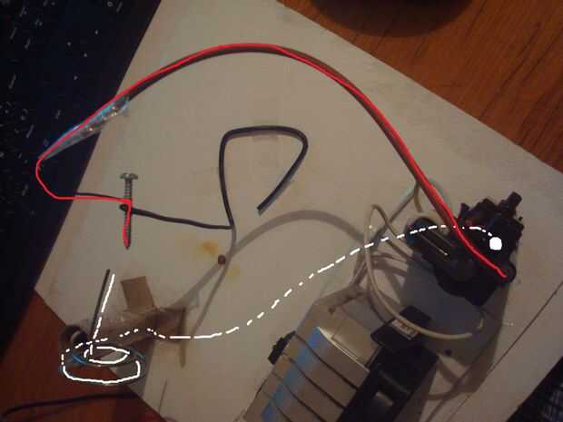 Ahora opcional, creamos la base, haciendo un orificio a la patilla donde hace conexión con el arco (opcional, el de la base de agarre del flyback a la base), si no es cual identificamos, podemos conectar con cuidado el Flyback con el pulsador de tonos y el transistor (ver mas abajo conexión o guiarse del diagrama), acercamos el cable a las patillas , en donde salga el arco, va a ser el lado de la perforación, los demás ya no se van una colección, así se van a cortar.