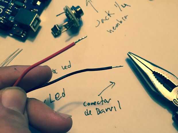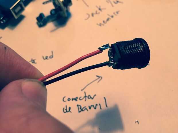 Esto es simple. El centro le coloco un cable rojo, y allí se conectará 5V, el de para borde y en negro el GND.